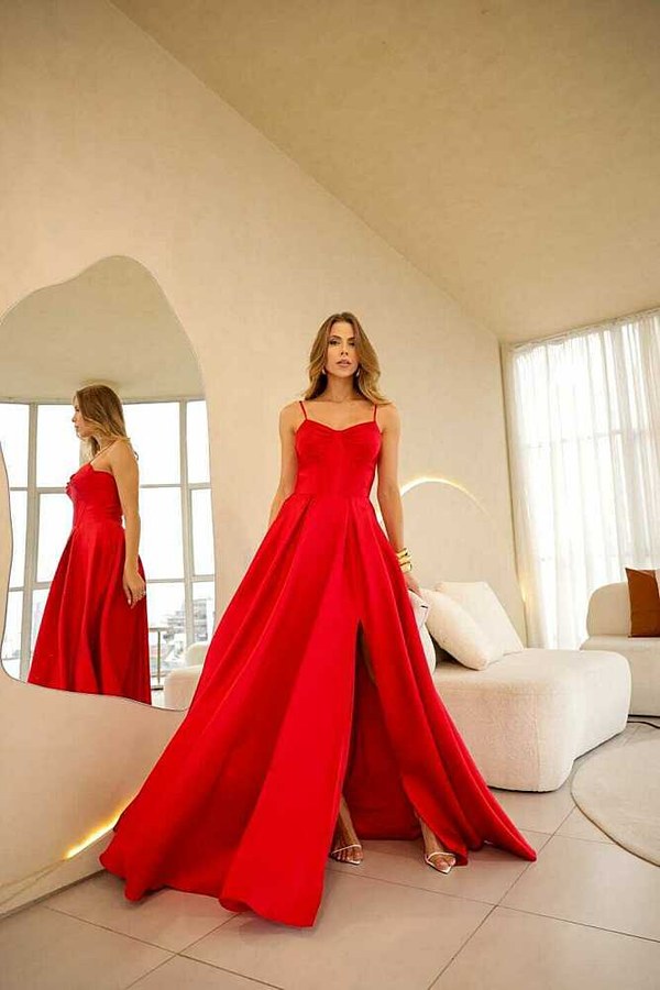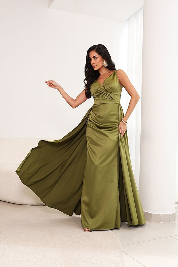 VESTIDO LONGO COM SAIA REMOVIVEL CETIM LYCRA