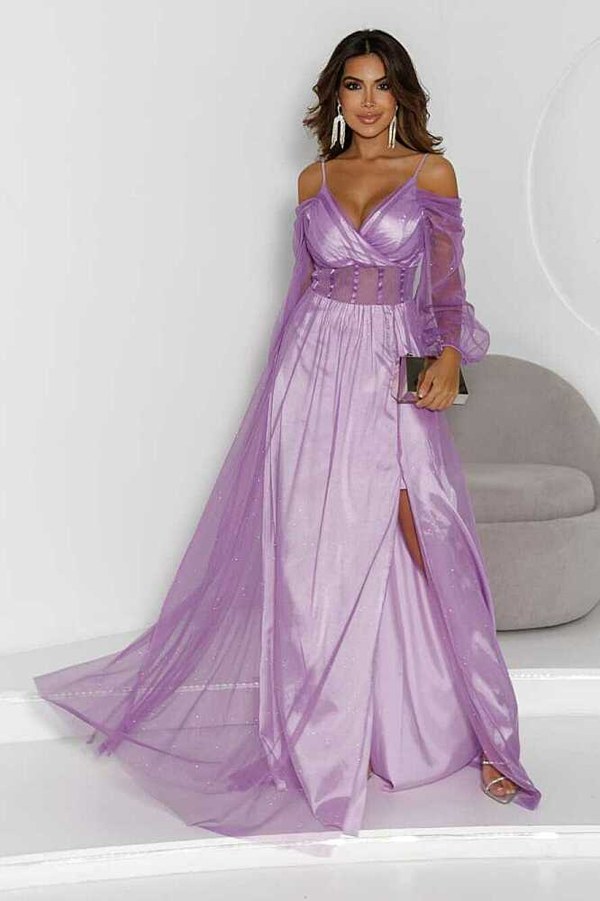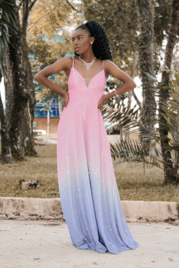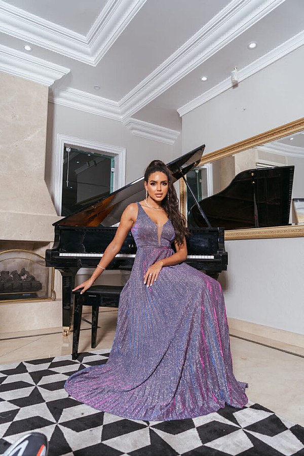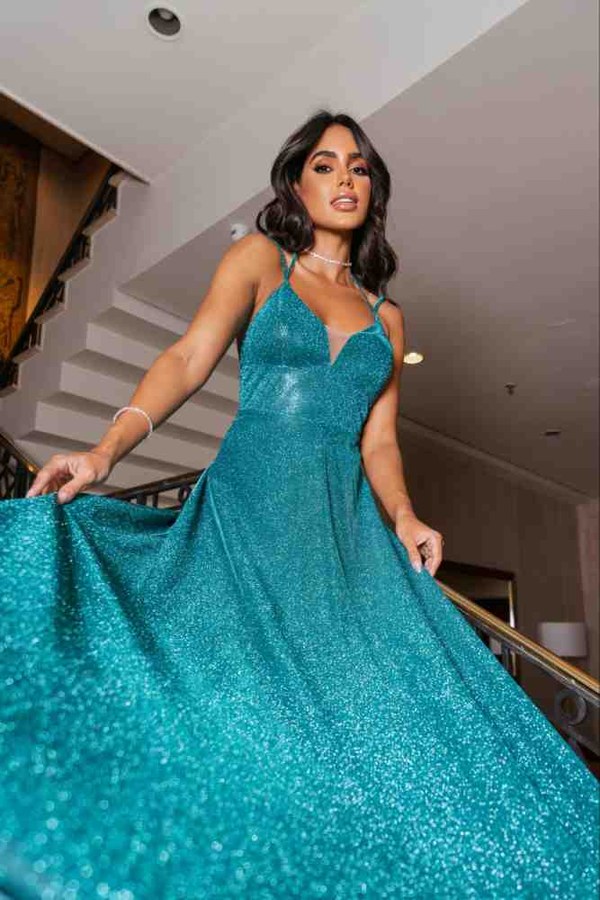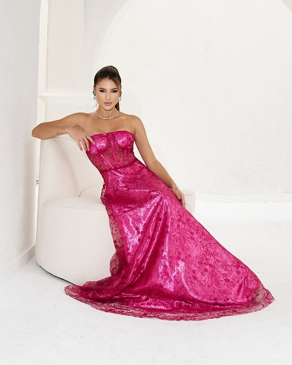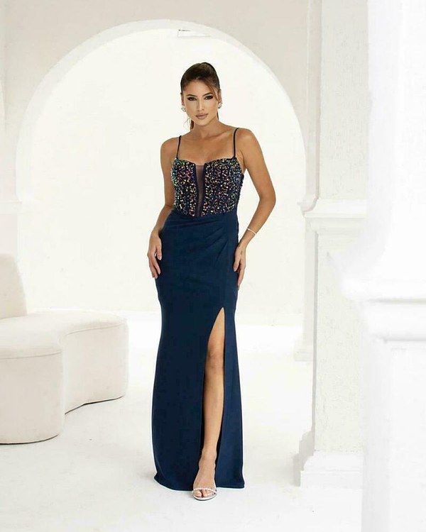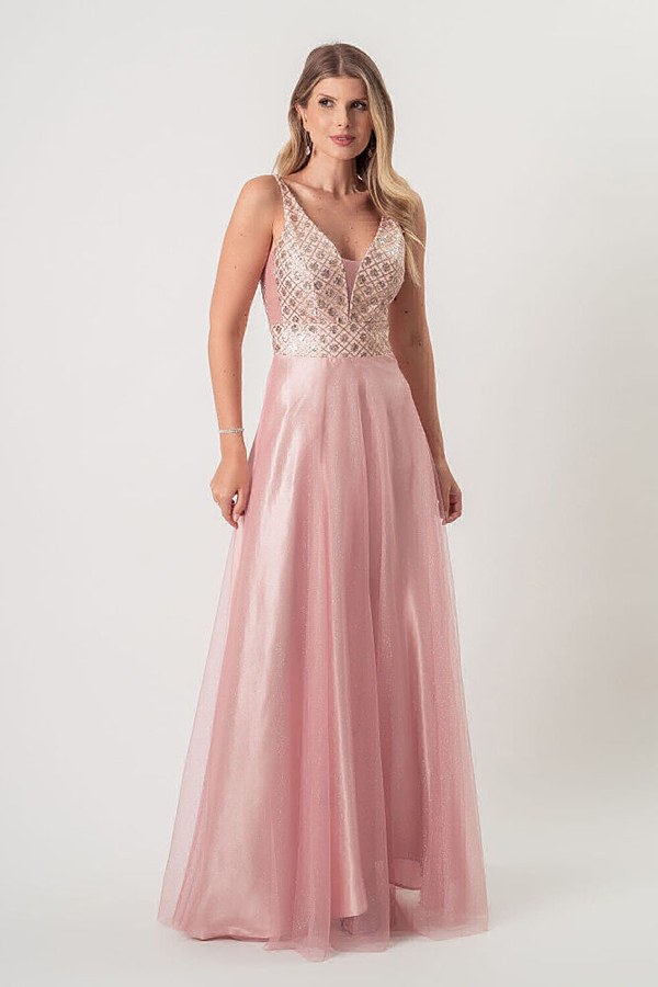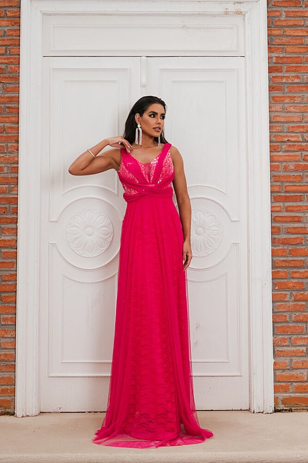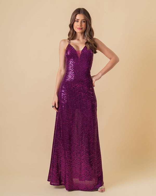 VESTIDO LONGO BUSTO DE PAETE C/ PALA REMOVIVEL