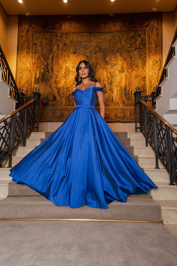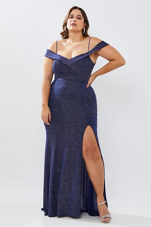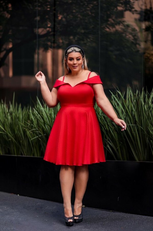Vestido Cocktail Tule com Ponto de Brilho Ombro Caido