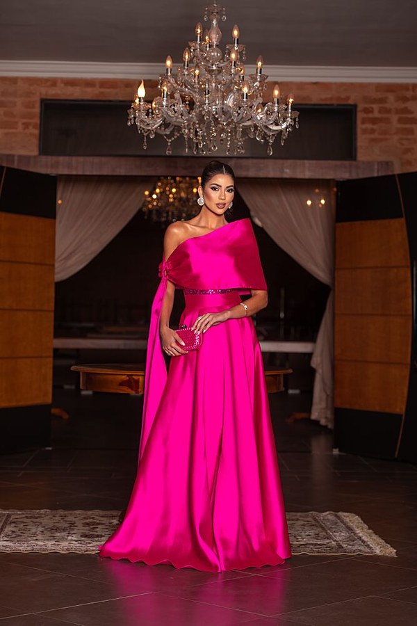 VESTIDO LONGO CETIM LYCRA BUSTO DETALHE DE PAETE