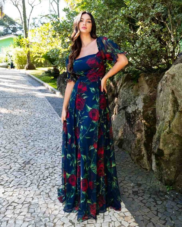 VESTIDO LONGO COM BUSTO TECIDO IMPORTADO