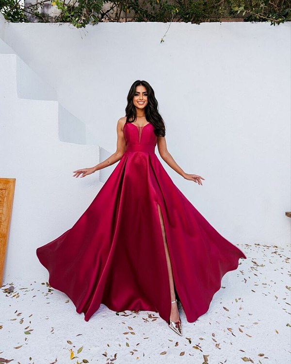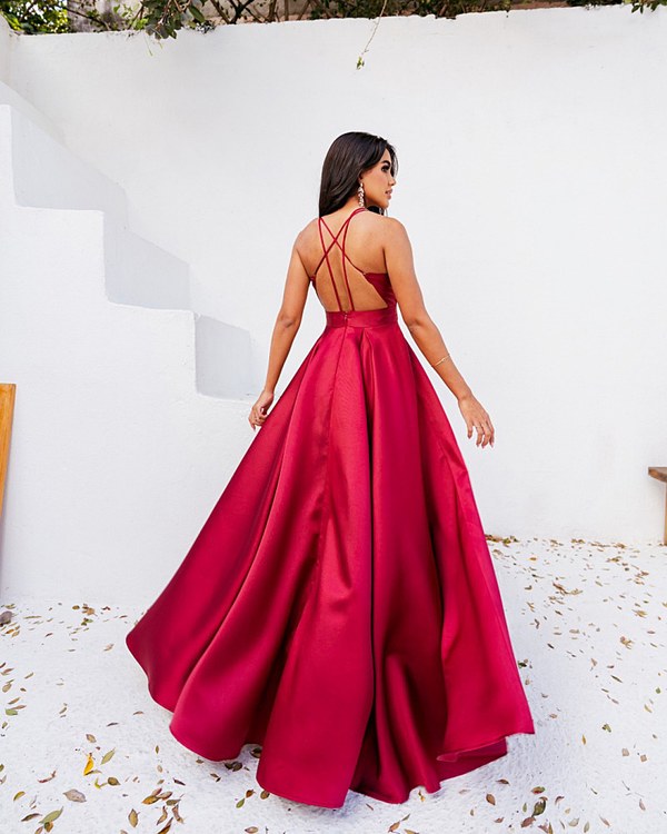 Vestido Longo Confeccionado em Tecido de Zibeline. modelo Clássico com Tecido Nobre, Perfeito para Qualquer Ocasião. modelo de Alça Fina, Decote V em ...