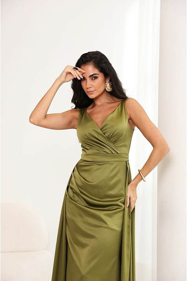 VESTIDO LONGO COM SAIA REMOVIVEL CETIM LYCRA
