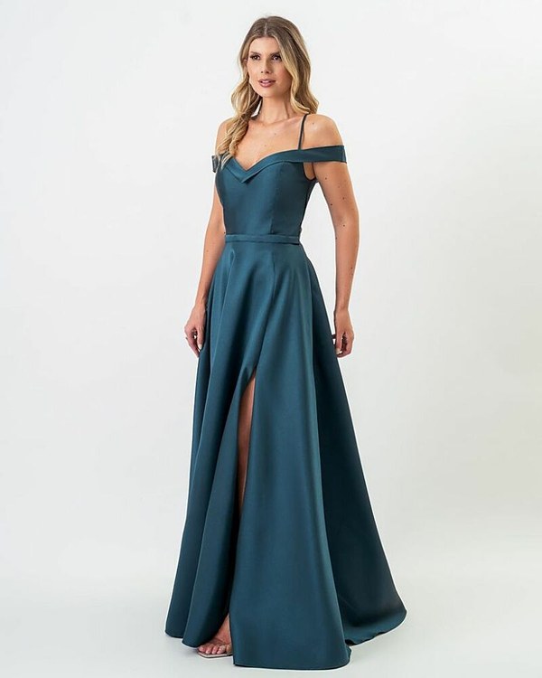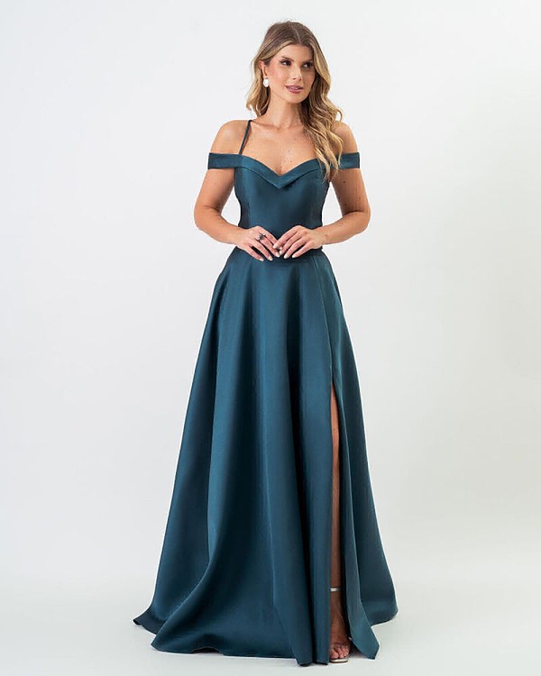 VESTIDO LONGO EM ZIBELINE OMBRO A OMBRO