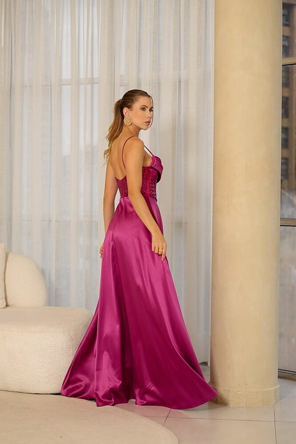 Vestido Longo, com vestido de festa c/ alça fina, longo c/ fenda, com gola drapeado, busto tule c/ paete importado. modelo vai do 38 ao 44
