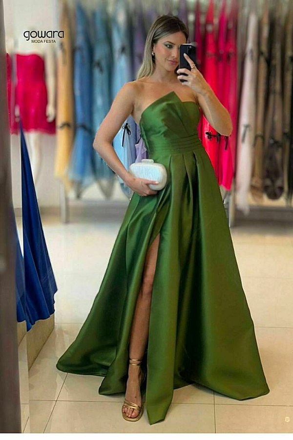 Vestido longo confeccionado em zibelie. modelo tomara que caia com busto assimétrico, cintura com pregas (feito cada um na nossa fábrica) e saia rodad...