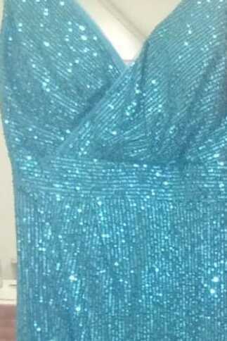 Vestido Estilo Cocktail Confeccionado em Paetê. modelo de Alça Fina e Fenda Na Lateral.