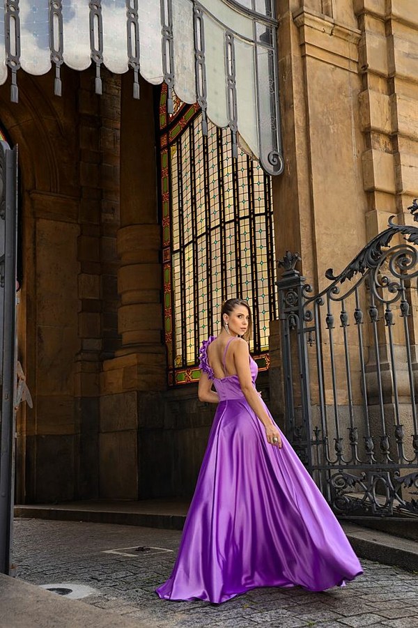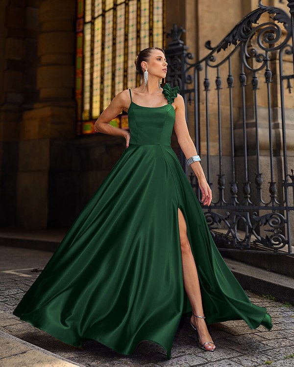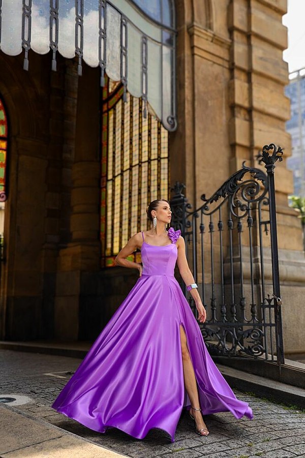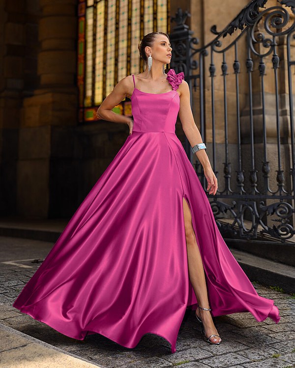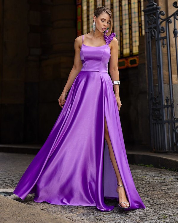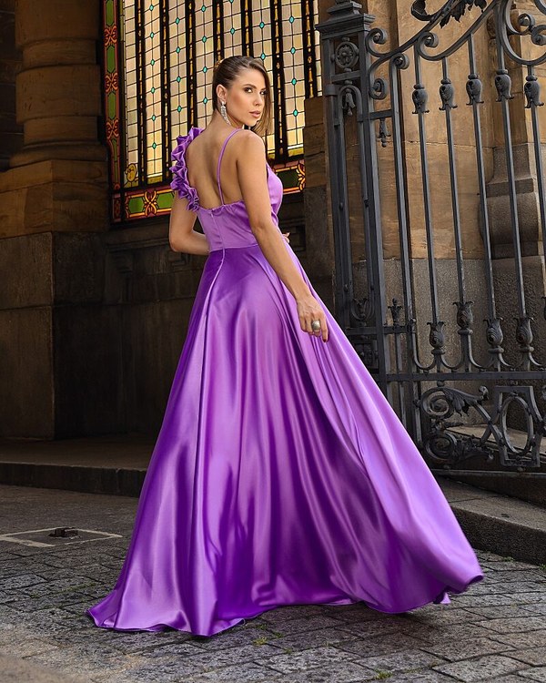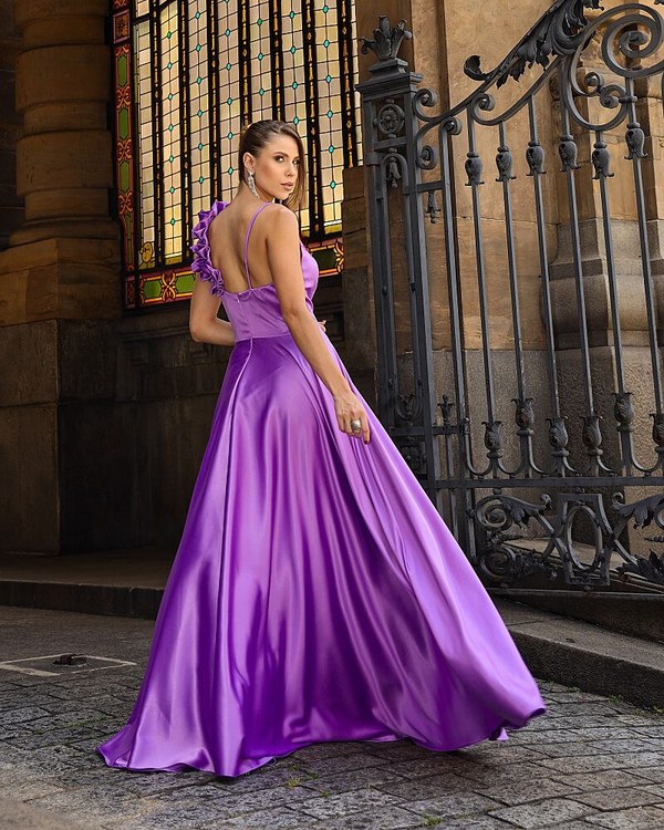 VESTIDO LONGO CONFECCIONADO EM TECIDO CETIM PRADA. SAIA TIPO EVASÊ. ALÇA DE BABADO QUE DÁ TODO UM CHARME.